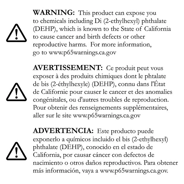- âš WARNING: This product can expose you to chemicals including Di (2-ethylhexyl) phthalate (DEHP), which is known to the State of California to cause cancer and birth defects or other reproductive harms. For more information, go to www.p65warnings.ca.gov