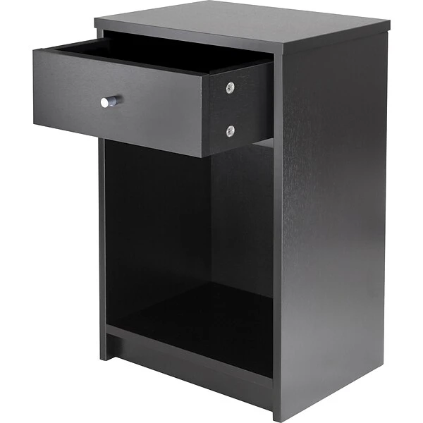 Winsome Squamish accent table features one drawer for spacious storage and open cabinet for display of things.Transitional style table has black veneer on composite wood construction.